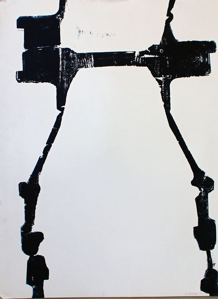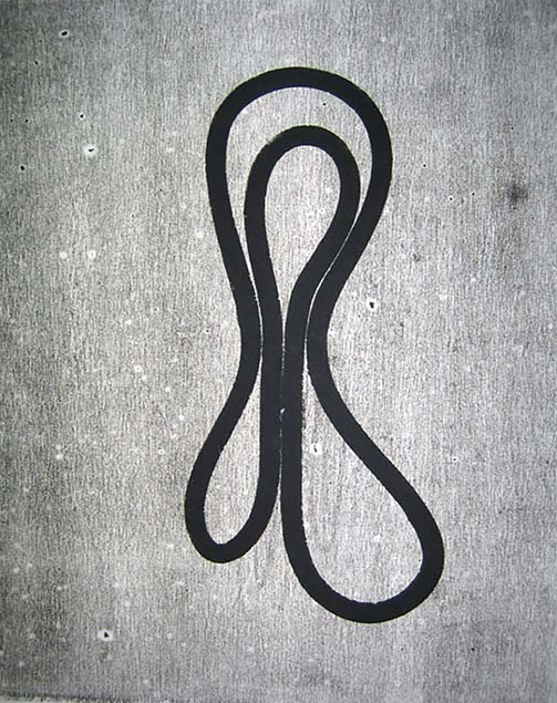 the streets. A truck fan belt, a piece of metal, really anything. I ink them, press the image on paper, and turn the three-dimensional object into two-dimensional art.